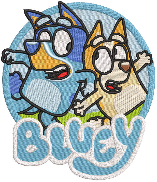 This badge-style Bluey and Bingo embroidery design features the lovable Heeler siblings in a playful pose, perfect for decorating kids’ clothing, backpacks, or accessories. Designed in a fun, circular patch format, this pattern is great for fans of the show. Compatible with most embroidery machines, it comes in multiple file formats for easy use. A must-have for Bluey lovers and creative gift makers!