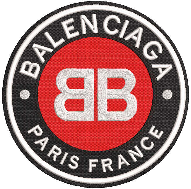 This Balenciaga round logo embroidery combines the signature double “B” emblem with refined typography and bold red-and-black contrast — ideal for creating high-fashion apparel or custom accessories.