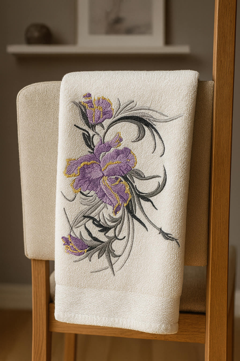 Elegant Big Swirl Iris embroidery design – a stunning floral pattern with graceful curves and detailed stitches. Perfect for decorating clothing, linens, and home décor. High-quality digital design for machine embroidery lovers who enjoy creative, stylish, and timeless floral accents. Easy to stitch and beautiful on any fabric!