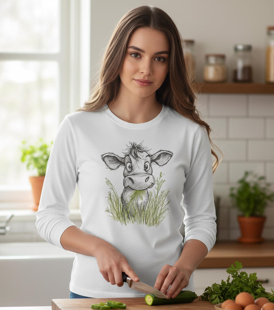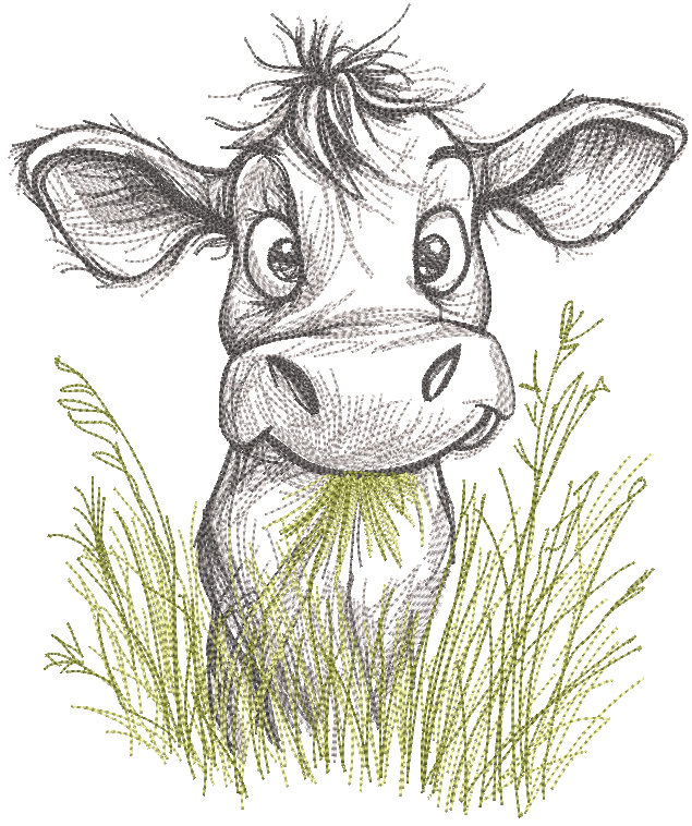 Calf Chewing Grass Sketch Embroidery Design Whimsical Farm Animal