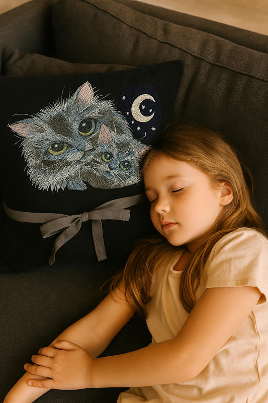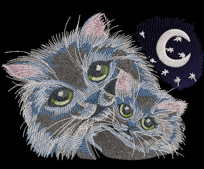 Add warmth and charm to your projects with the Cat’s Family at Night embroidery design. Featuring a mother cat cuddling her kitten under the moon and stars, this detailed pattern is perfect for clothing, cushions, tote bags, and home décor. High-quality, easy-to-stitch design that brings coziness and love to your handmade creations.
