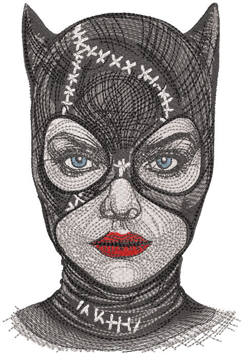 Bring Gotham’s dark elegance to your projects with the Catwoman Michelle Pfeiffer embroidery design. Inspired by the iconic Batman Returns character, this detailed pattern captures her stitched leather mask, piercing eyes, and red lips. Perfect for jackets, hoodies, bags, and collector pieces. High-quality, easy-to-stitch embroidery for superhero fans and cosplay lovers.