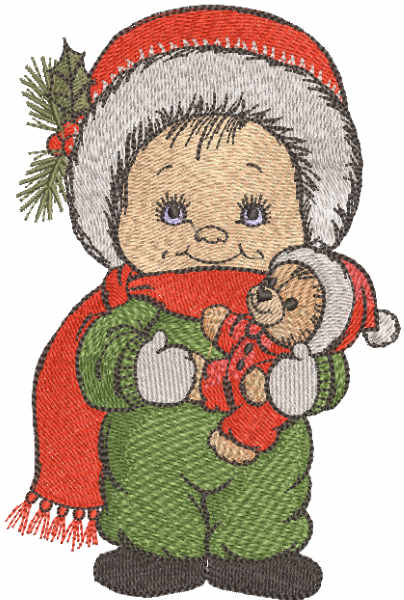 Christmas boy with teddy bear embroidery design