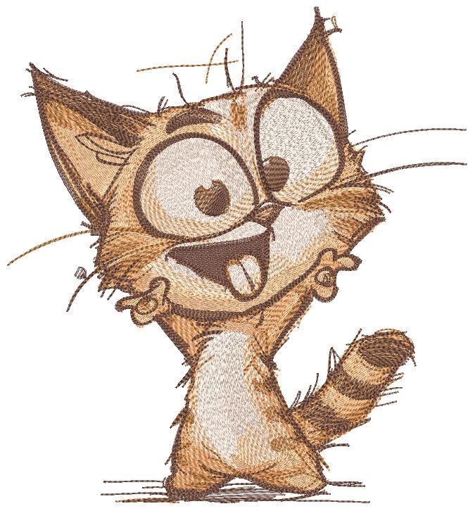 Cool and Weird Cat Cartoon Embroidery Design Ideal for Pet Lovers