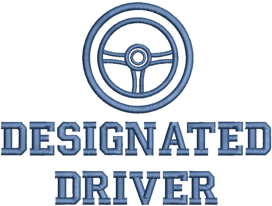 Designated Driver Embroidery Design Bold Steering Wheel Icon with Clean Typography