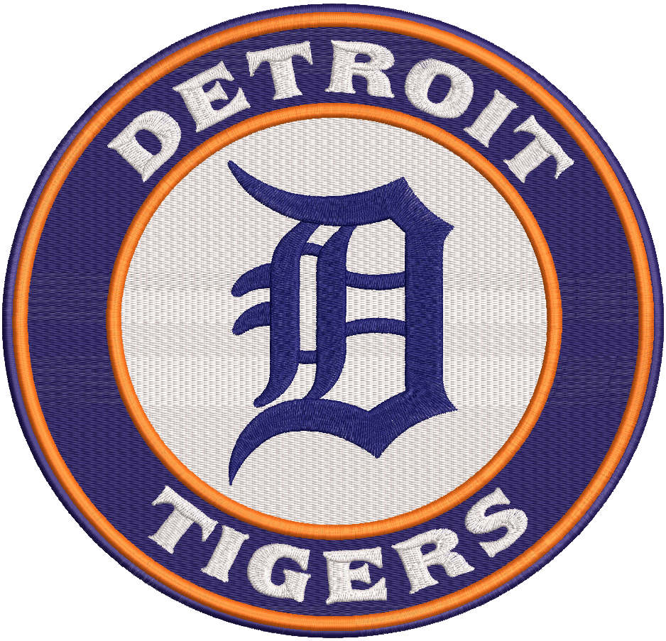 This Detroit Tigers classic logo embroidery design features the iconic Old English “D” centered inside a bold circular badge with team lettering. The balanced layout and traditional colors create a vintage MLB look that feels authentic and instantly recognizable, reflecting the heritage of the Detroit Tigers.