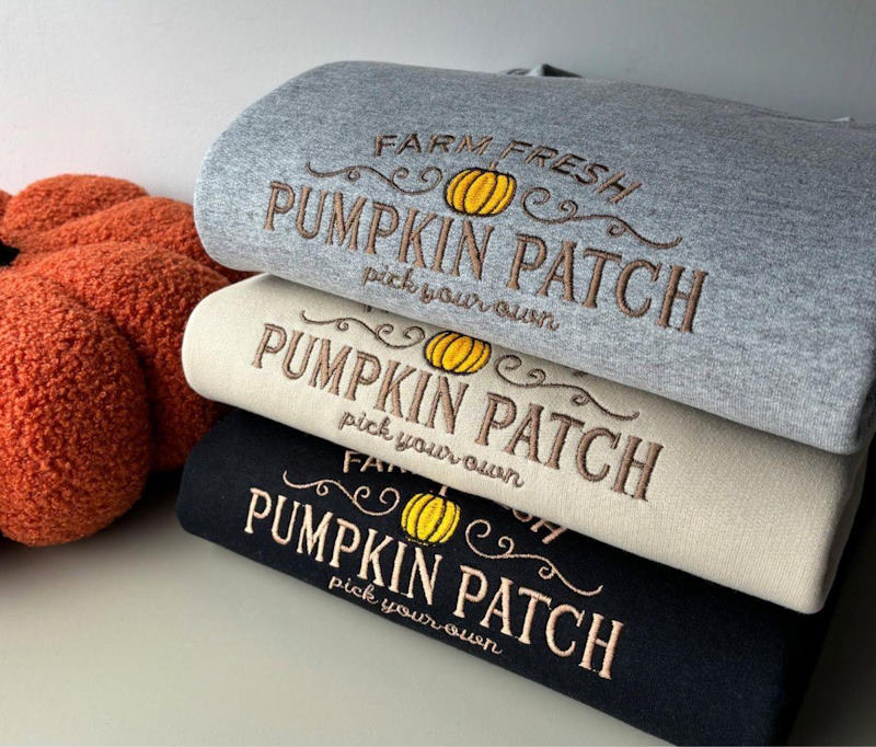 Add rustic autumn charm to your home décor or apparel with this pumpkin patch stitch design — great for farmhouse lovers and harvest fans.