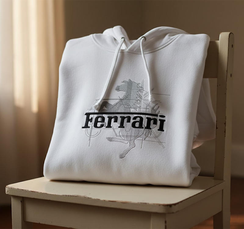 The Ferrari modern logo embroidery design presents a clean, contemporary interpretation of the iconic prancing horse—sleek lines, dynamic posture, and a refined silhouette. Precisely digitized to reflect the premium identity of Ferrari, this design delivers crisp edges and smooth fills for a modern motorsport aesthetic.
