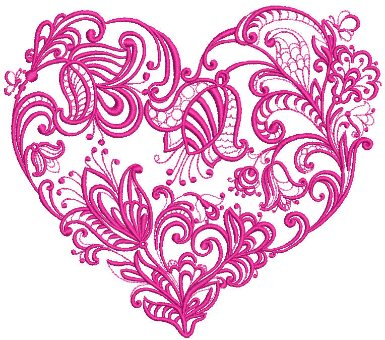 Floral Heart Embroidery Design Romantic Pattern for Gifts