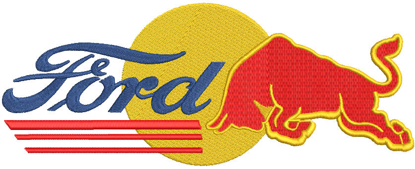 Bold and energetic Ford Red Bull embroidery design combining two iconic brands in one high-octane stitch. Ideal for motorsports fans, racewear, caps, jackets, and garage gear. Bring speed, power, and performance into your embroidery projects with this dynamic automotive emblem.
