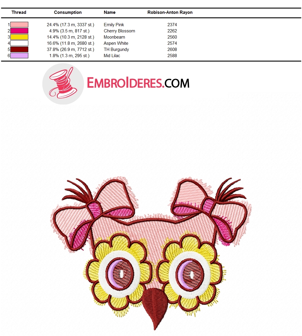 Merry muzzles of animals and birds are a frequent element of the decor of children's clothing that is used in machine embroidery. Small in size, they look good on the pocket of a children's shirt, pajamas, skirts, pants or a summer T-shirt. We added another free machine embroidery design. It's a bird, or rather an owl. So cheerful with bows. A good simple project for a girl's dress. We reduced the density of embroidery coverage from the standard 0.4 to 1.05 (used Wilcom software options). We hope it was original and not density. Consider this when choosing a embroidery thread and fabric. The fabric will be visible under the embroidery threads.