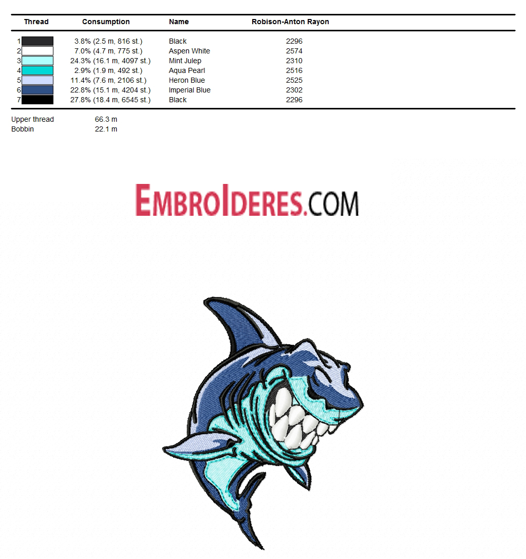 Shark free machine embroidery design