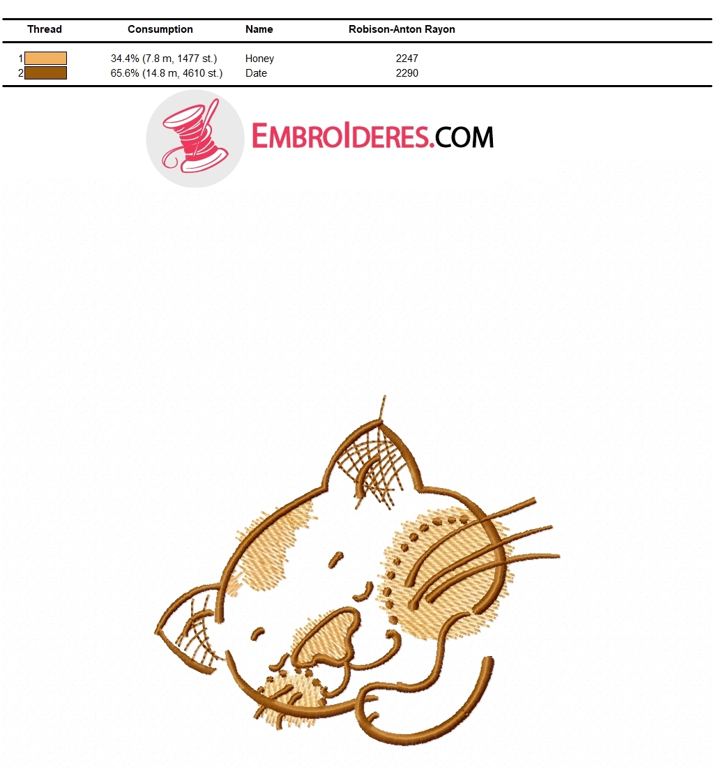 What could be nicer than a sleeping kitten. Millions and millions of these photos filled the Internet space. Their use can be seen everywhere; advertising, covers and screensavers on mobile phones, T-shirts and bags. We did not stay aside. This small free design of machine embroidery will fit well into your child's summer t-shirt. A pretty muzzle will also look great on a bib or napkin. As always, there is no limit to the format and time for downloading (design is always available for free). We added a size compatible with any type of embroidery machine - a 4 x 4 embroidery hoop.