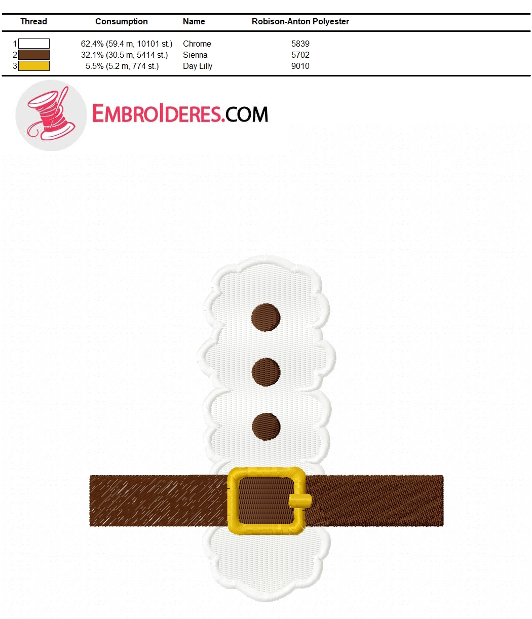 A Stitch in Holiday Spirit Embark on a festive journey with our Santa Belt and Buttons Free Embroidery Design. Meticulously crafted, this design captures the essence of Christmas, bringing a touch of Santa's magic directly to your home. Ideal for customizing holiday apparel, decorations, or gifts, it radiates charm and warmth. The rich, vivid colors mirror Santa's iconic outfit, while the detailed stitch patterns showcase your embroidery skills, making each creation a unique masterpiece. Whether adorning a stocking, a festive sweater, or a handmade gift, this design adds a personal, heartwarming touch to your holiday celebrations.