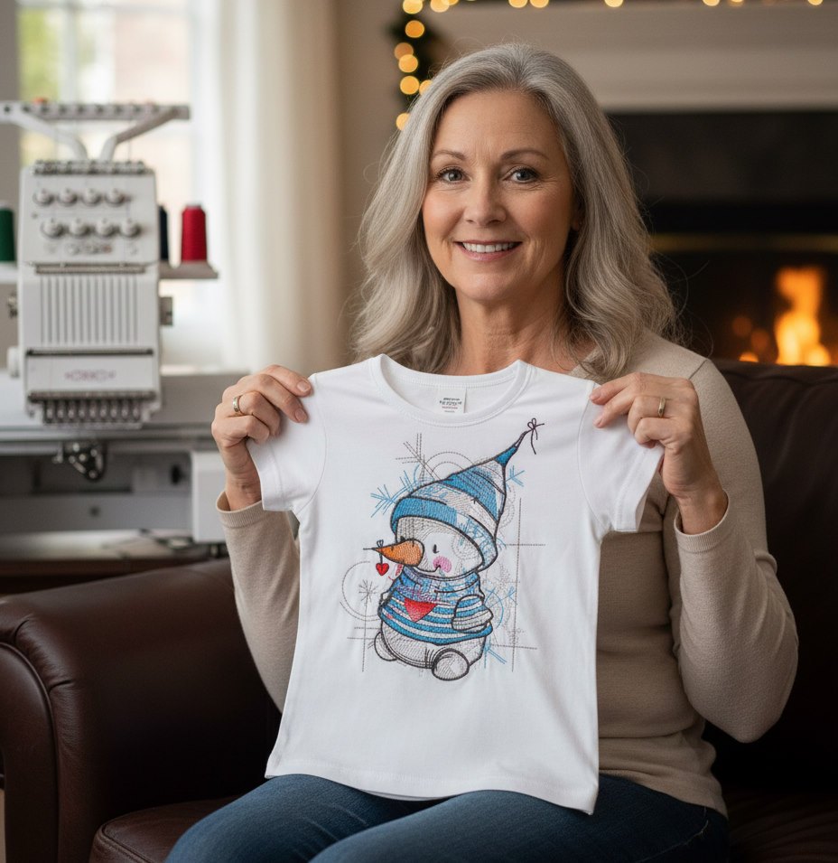 This free snowman embroidery design captures the joy of Christmas — a cute snowman in a knitted hat with a little heart of love. Ideal for festive linens, sweaters, and handmade gifts. Add warmth and tenderness to your holiday stitching!