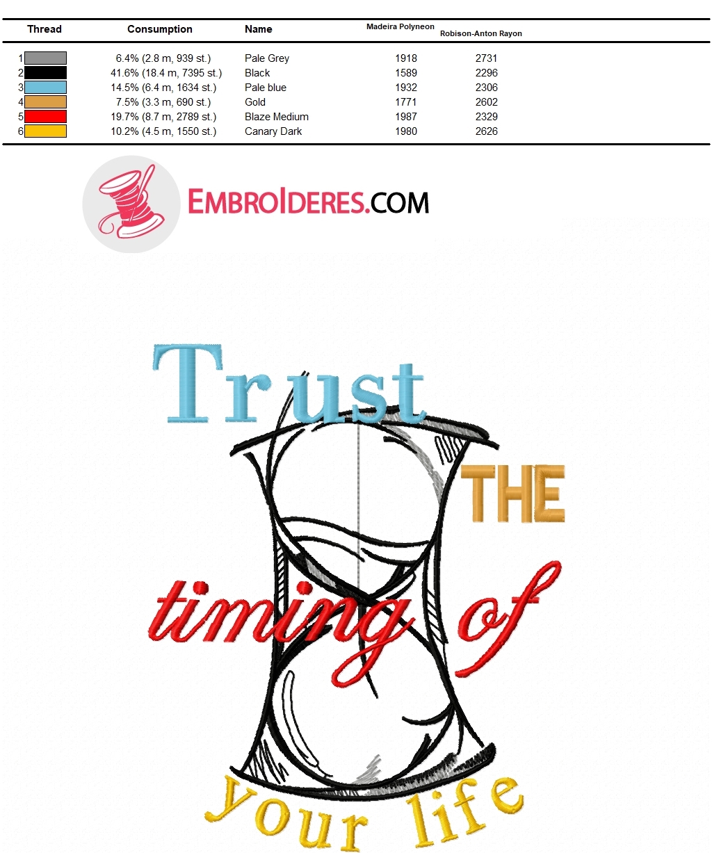 Trust the timing of your life embroidery design