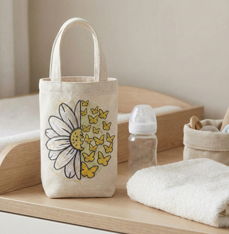 Fluttering Delights and Blooming Brightness Stitch a Scene of Daisies and Butterflies