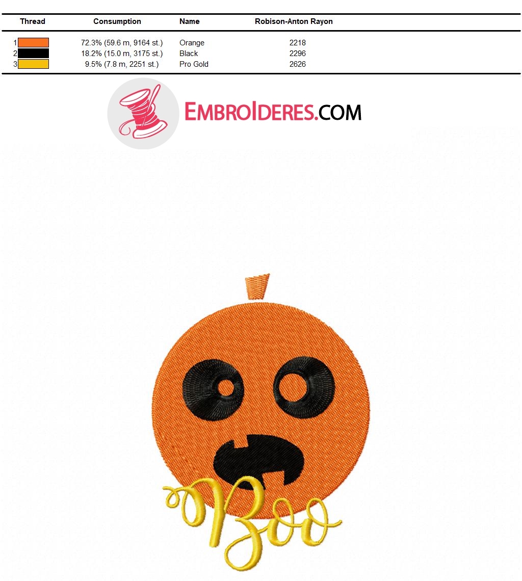 Make this year’s Halloween an evening to remember with this amazing embroidery design! It features a traditional Halloween symbol, an orange pumpkin with a yellow “Boo” inscription. The pumpkin has wide-opened black eyes and mouth. We all know that finding a unique Halloween costume can be such a chore but with this original detail you can transform any piece of clothing and impress everyone with your look. The design is perfect for kids and adults alike and stitches out super easily to all sorts of suitable fabrics. Go scare your neighbors and have fun in a cool costume you will actually like!