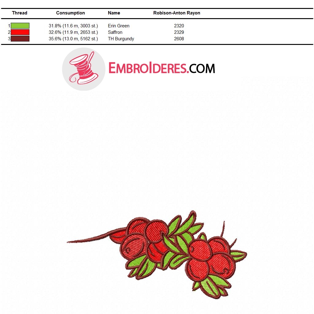 Red berries free embroidery design 2