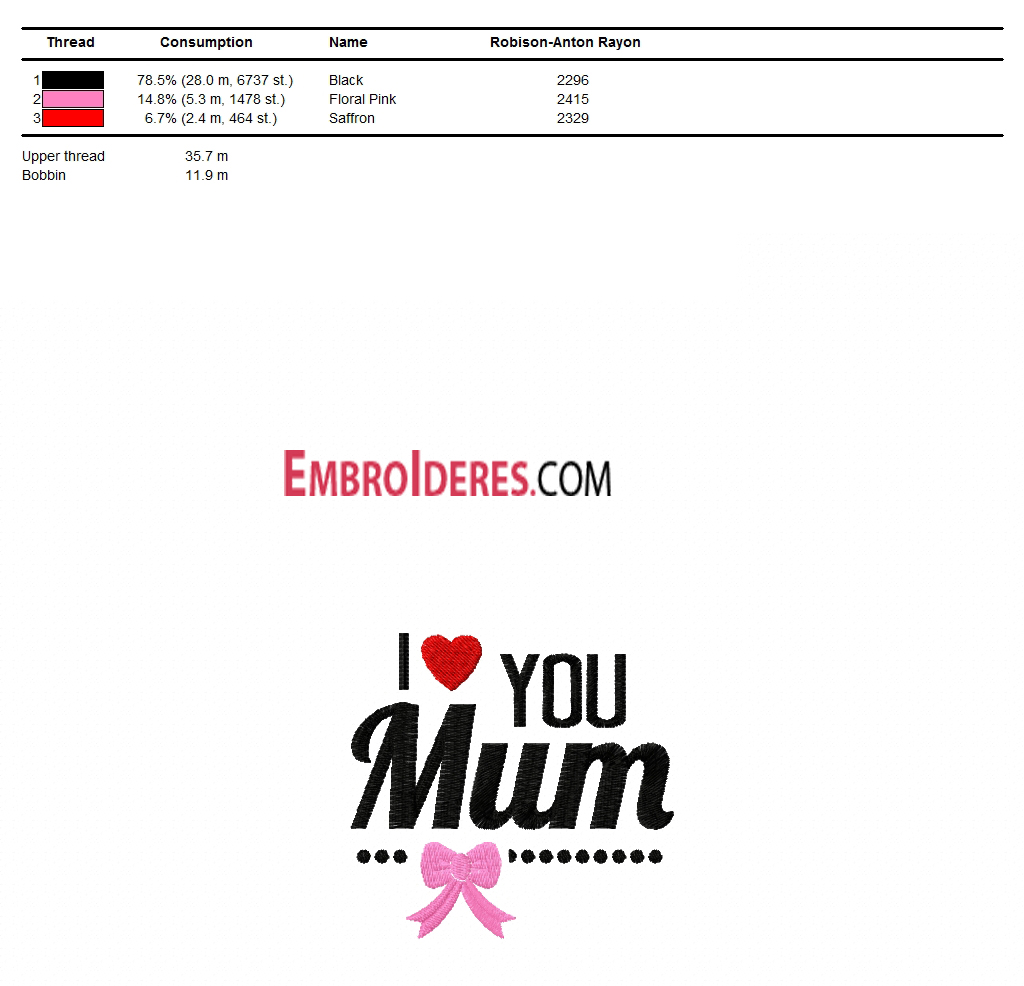 i love you Mum free embroidery design