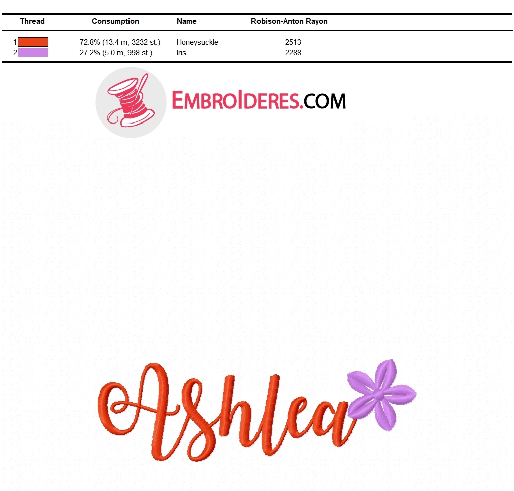 The design is available in two sizes and is compatible with any embroidery machine. The minimum hoop size is 4 x 4 inches.