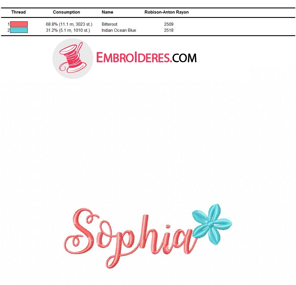 Sophia name free embroidery design