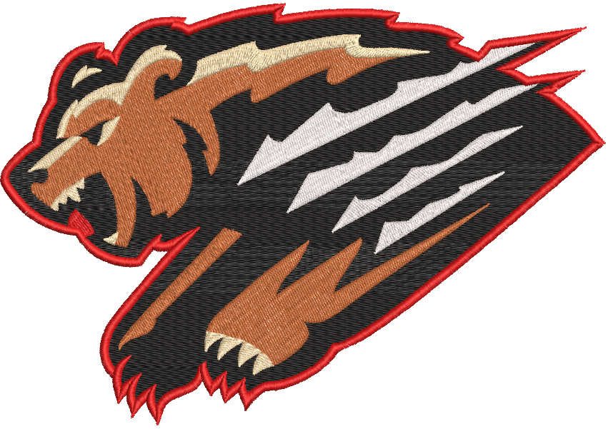 Fresno Grizzlies primary logo embroidery design showcases an aggressive bear emblem with sharp claw details and bold contour stitching. Perfect for customizing jackets, hoodies, caps, backpacks, and sports fan apparel. The balanced stitch density and strong satin borders ensure clean, durable results on light and dark fabrics. A powerful embroidery file for baseball fans and sports-themed projects.