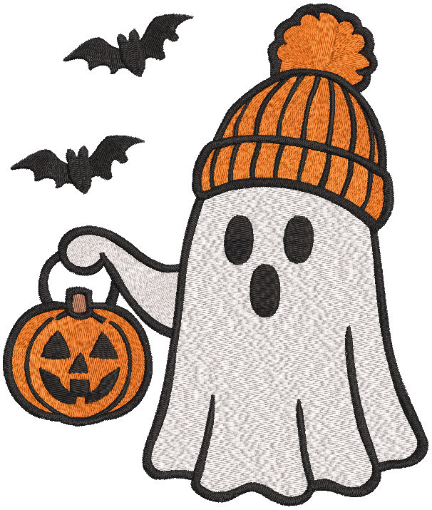 This Ghost with Halloween Pumpkin Embroidery Design brings cozy Halloween vibes to your stitches!