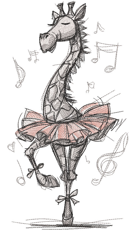 Elegant Giraffe Ballerina Sketch Embroidery Pattern