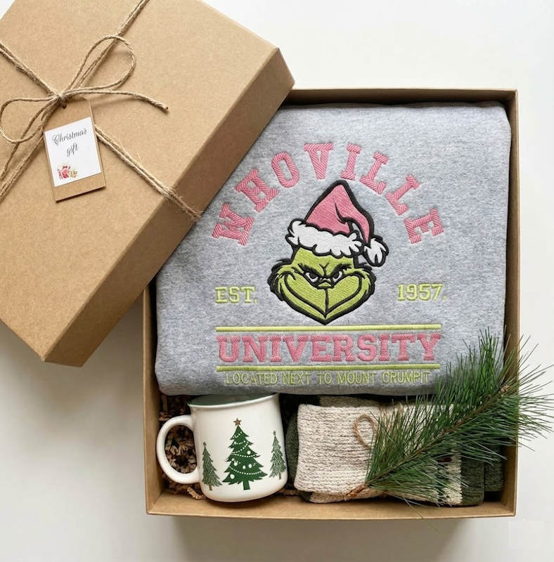 The Grinch Whoville University design is your go-to for holiday embroidery projects. It’s not just an embroidery design; it’s a way to spread cheer and capture the essence of the holiday season. Ideal for customizing Christmas stockings, holiday sweaters, or festive home decorations, this design will surely bring smiles and a festive spirit to any space.