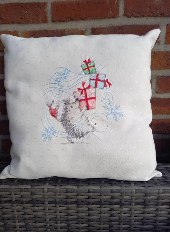 Spread Holiday Cheer with the Hedgehog Bringing Christmas Gifts Embroidery Design