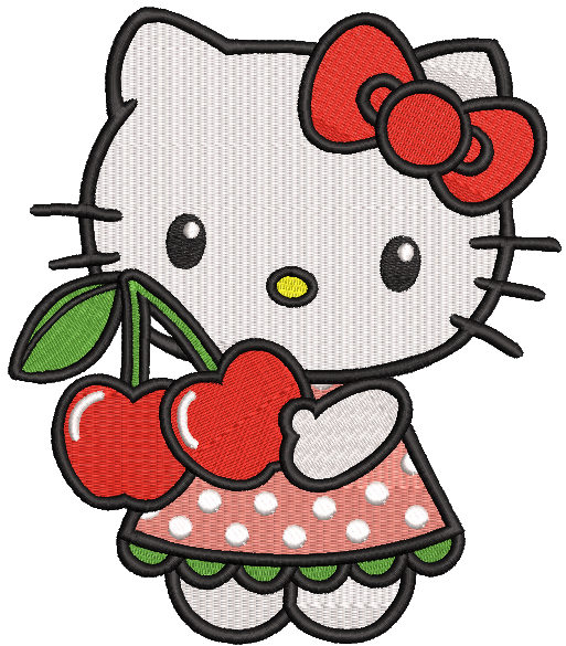 Adorable Hello Kitty Cherry embroidery design – perfect for kids’ clothing, baby apparel, accessories, and gifts. Add a sweet and playful touch with this cute design featuring Hello Kitty holding cherries. Ideal for machine embroidery lovers looking for charming, high-quality cartoon embroidery patterns.