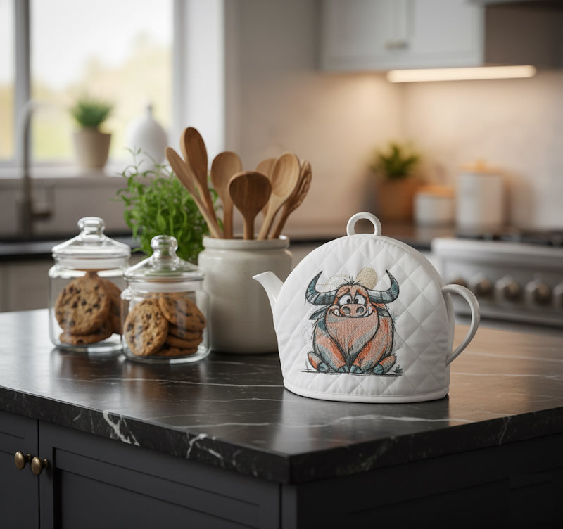 This Highland Cow Sketch Embroidery Design captures the cozy, rustic spirit of countryside life with a whimsical sketch-style texture. The soft crosshatch stitching gives it a hand-drawn look — making it perfect for tote bags, aprons, cushions, or kids’ wear.