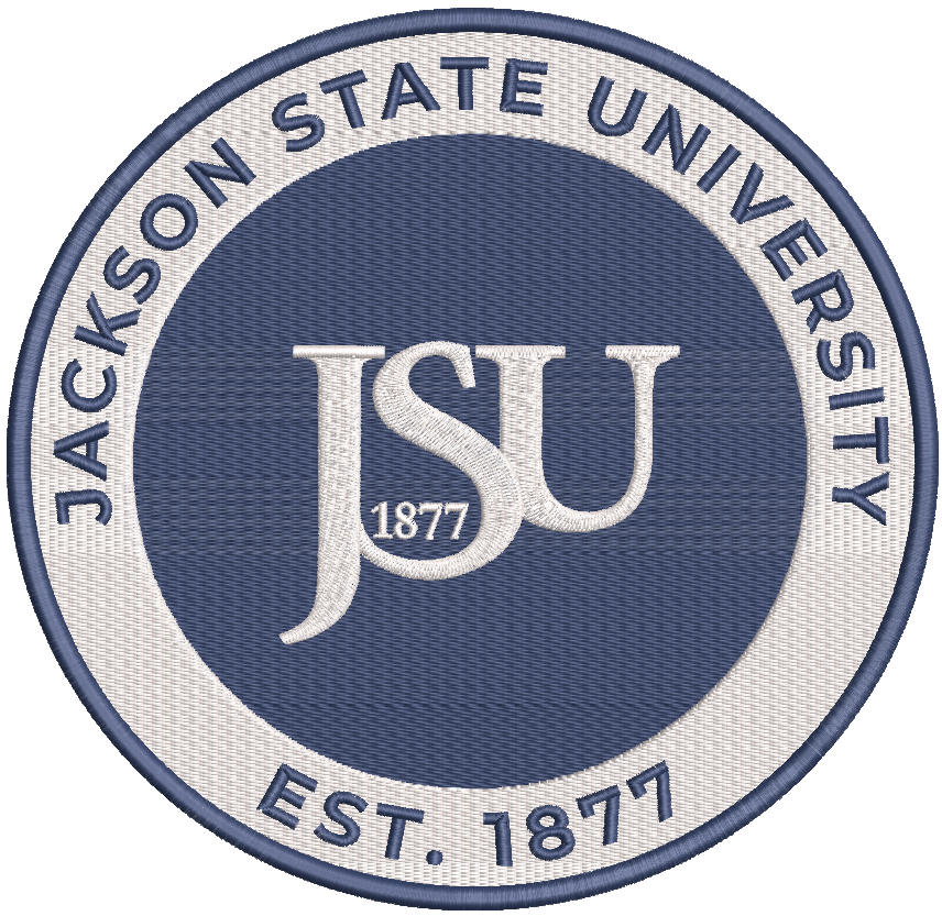 Jackson State University round logo embroidery design features a classic circular collegiate crest with bold JSU lettering and established date detail. Designed with balanced stitch density and smooth satin outlines for clean results on cotton, fleece, and sports fabrics. Perfect for customizing jackets, hoodies, caps, backpacks, and campus fan gear. A timeless university-style embroidery file for academic and sports-inspired projects.