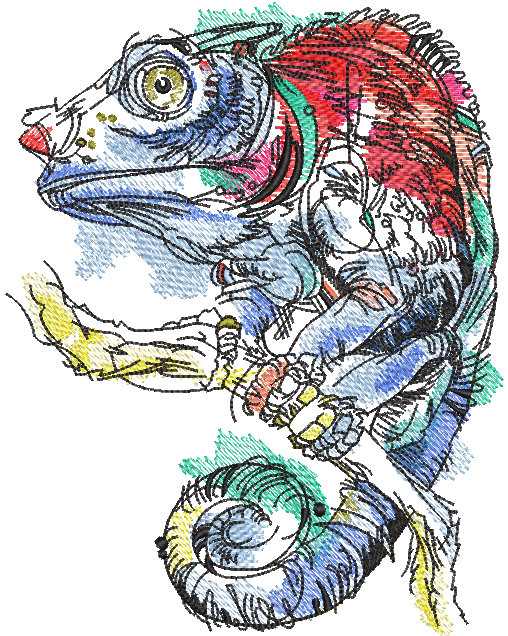 Bring vibrant wildlife to life with this Lizard on Tree Branch embroidery design! Inspired by chameleons and iguanas, this artistic sketch-style design captures a colorful reptile resting on a branch. The abstract fill and hand-drawn aesthetic create a unique, painterly effect.