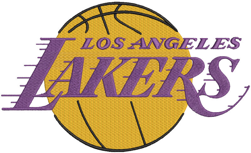 This Los Angeles Lakers logo embroidery design showcases the iconic basketball graphic with bold lettering and dynamic motion lines. The classic purple and gold color scheme delivers instant recognition and a timeless NBA aesthetic, making the design visually strong and balanced.