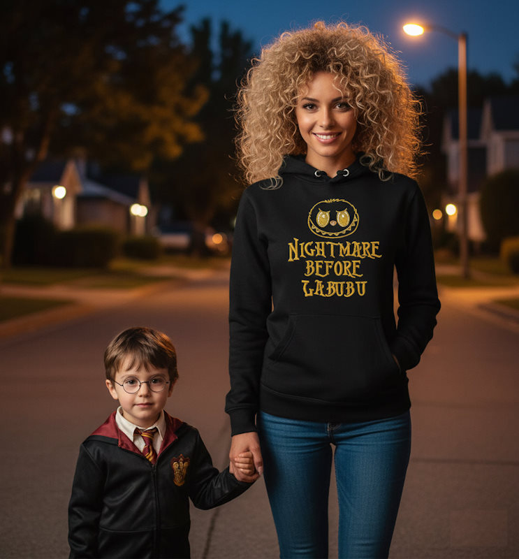 This Nightmare Before Labubu embroidery design combines gothic Halloween vibes with the mischievous charm of Labubu. Featuring bold stitched lettering and Labubu’s iconic grin, this design is perfect for hoodies, tote bags, jackets, costumes, cushions, or themed decorations. Whether you love dark fantasy aesthetics or want a playful spooky touch, this design makes every project stand out with personality and charm.