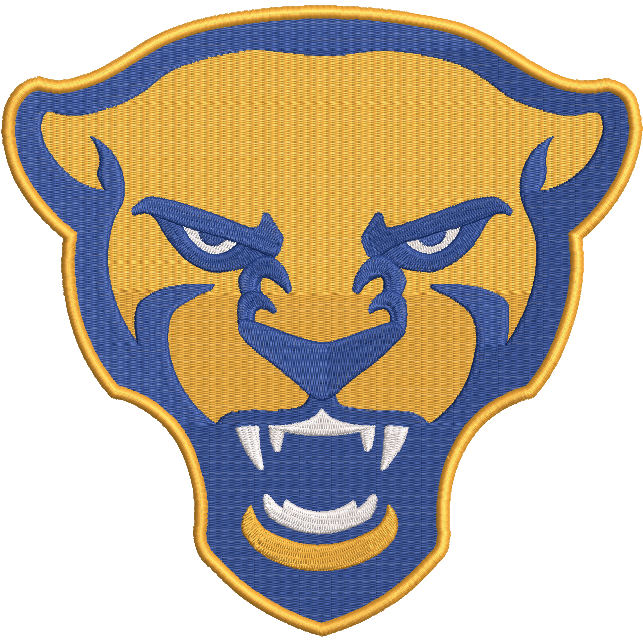 Download the Pittsburgh Panthers 2019 Secondary Logo embroidery design featuring the fierce Panther head in gold and blue. A bold and detailed design perfect for fan jackets, hoodies, caps, and bags. High-quality stitches make it durable and easy to embroider on sportswear, alumni apparel, and custom Pitt fan gear.