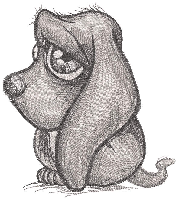 Sad Puppy Greyscale Embroidery Design captures the tender expression of a little puppy sitting quietly with big, soulful eyes and drooping ears. The monochrome shading and pencil-sketch texture give the design a hand-drawn, artistic feel — perfect for embroidery lovers who enjoy expressive, emotional, and realistic animal motifs.
