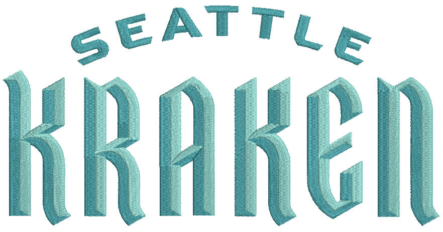 This Seattle Kraken Wordmark Logo Embroidery Design features strong, stylized lettering inspired by maritime themes and modern sports typography. The tall, carved letterforms and cool ocean-blue tones create a bold, distinctive look perfect for jackets, hoodies, hats, tote bags, patches, and custom fan gear.