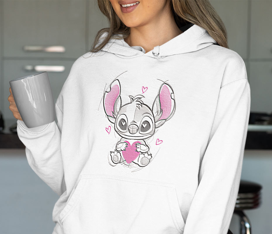 Celebrate the charm of Stitch with a Sitting Stitch with Heart Sketch embroidery design! Perfect for customizing clothing, accessories, and gifts. Explore whimsical Disney-inspired patterns now.