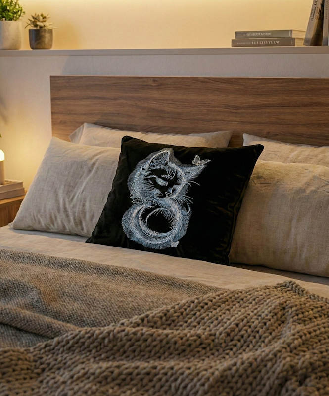 Sleeping kitty black background embroidery design