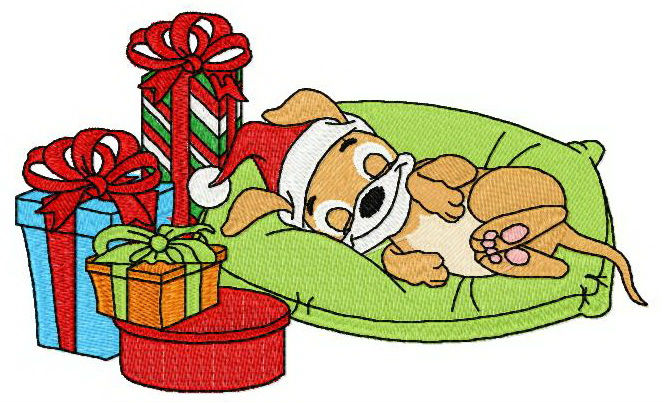 Sleeping puppy embroidery design