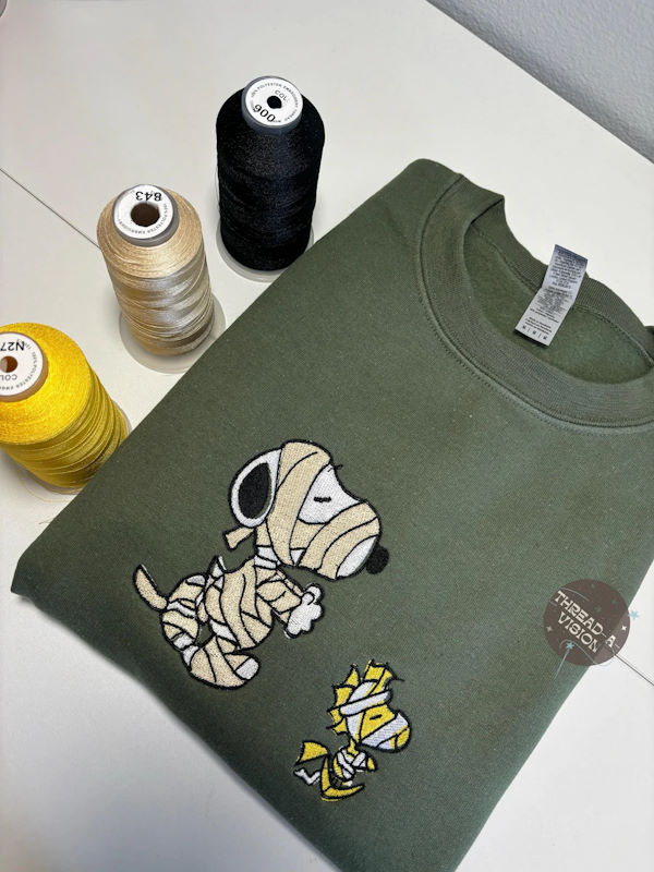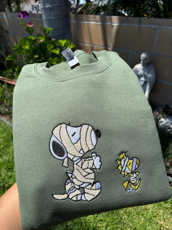 Snoopy Mummy Crewneck Embroidery Design Classic Peanuts Scene in Costume