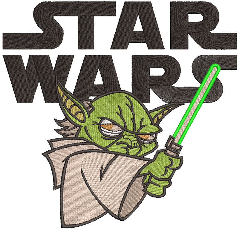 Star Wars Yoda embroidery design. High-quality digitized file with iconic Jedi Master Yoda. Perfect for T-shirts, hoodies, bags, patches. Meticulous stitch density, clean trims ensure smooth results on any fabric. Formats: PES, DST, EXP, VP3, HUS, JEF. Compatible with Brother, Janome, Bernina, Singer, major machines. Instant download – start stitching Yoda now. Great for Star Wars fans!