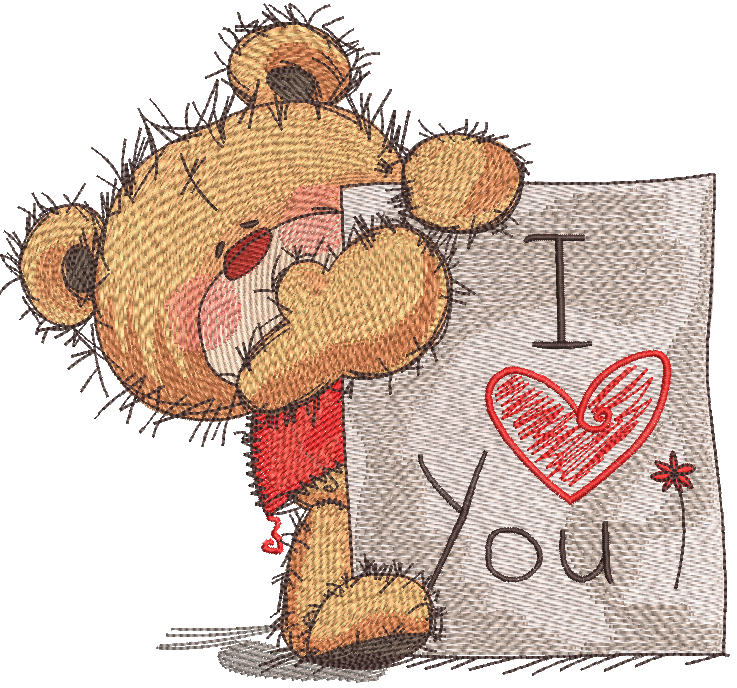 Teddy Bear with "I Love You" Board Embroidery Design Charming hand-drawn style