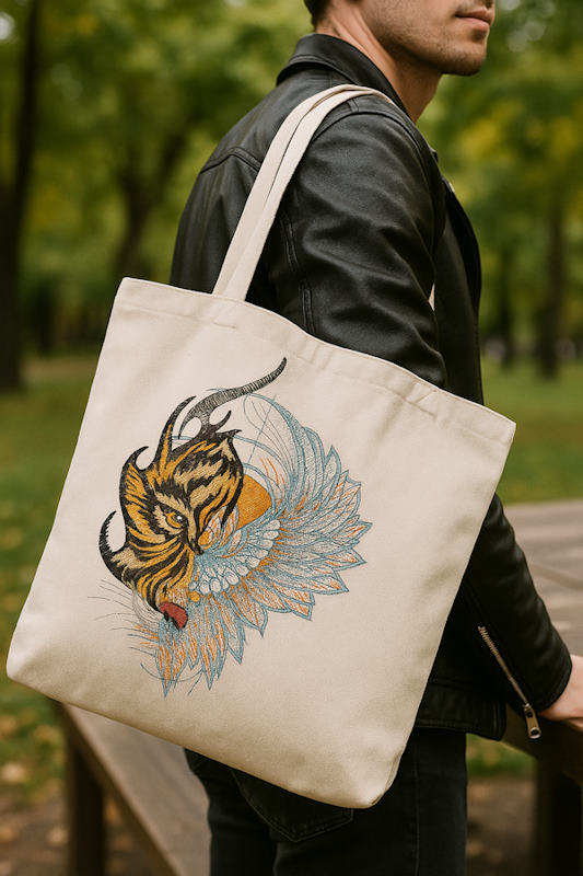 Unleash your creativity with the Tiger Wings Embroidery Design, a striking pattern featuring a powerful tiger with radiant, bright wings. This unique design combines the majesty of a tiger’s half muzzle with the ethereal beauty of wings, creating a bold and artistic statement. Perfect for adding a touch of wild elegance to your projects, this design is sure to captivate.