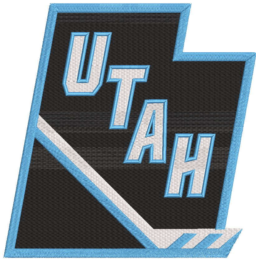 The Utah Mammoth alternate logo embroidery design features a bold, angular emblem with strong lettering and sharp geometry, giving it a modern and aggressive sports identity. Inspired by the visual style of the Utah Mammoth, this design is digitized for clean edges, solid fills, and excellent stitch clarity.