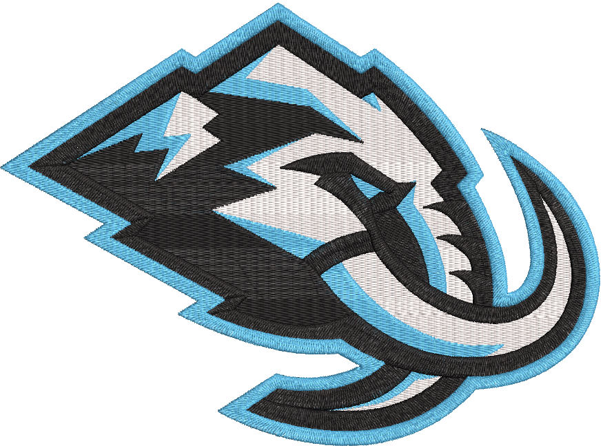 This bold logo captures the strength of the mammoth with a dynamic mountain-shaped outline — symbolizing Utah’s rugged landscape and team spirit.