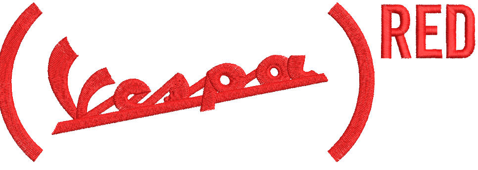 Vespa Red Logo Embroidery Design – One-Color Retro Scooter Style